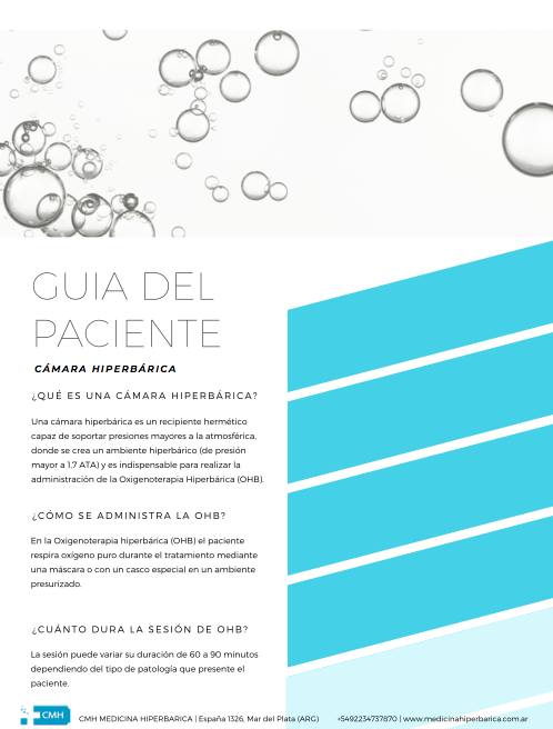 Para conocer más sobre cómo es el tratamiento en cámara hiperbárica ud puede leer este folleto en pdf para informarse. >>>>